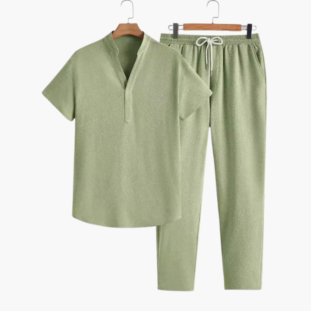 Men's Set with Henley Shirt and Shorts for Summer