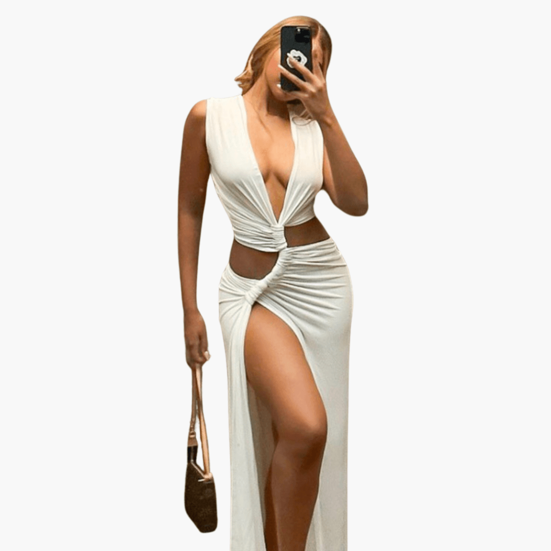 Summer Dress for Women – Cut-Out, V-Neck, Side Slit