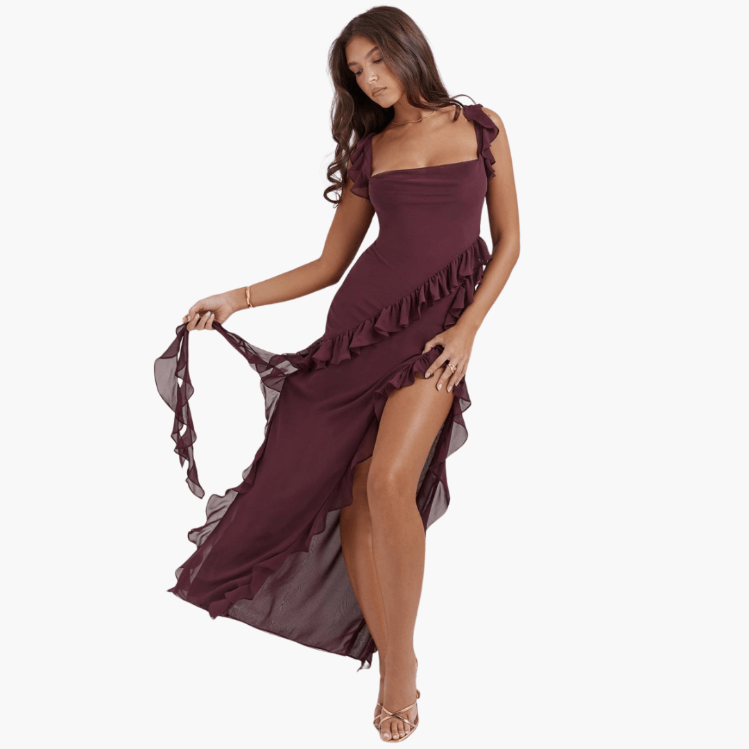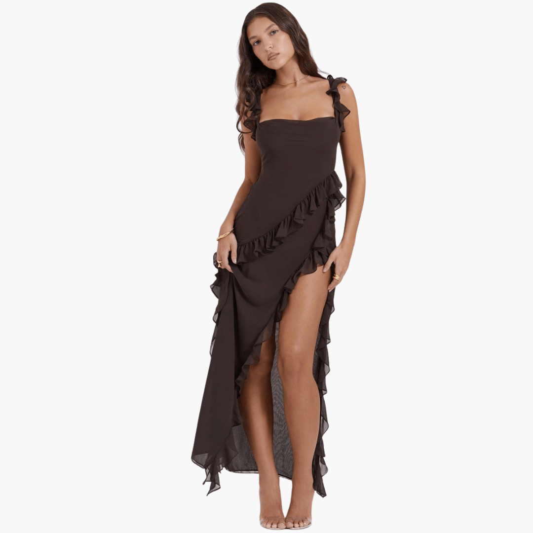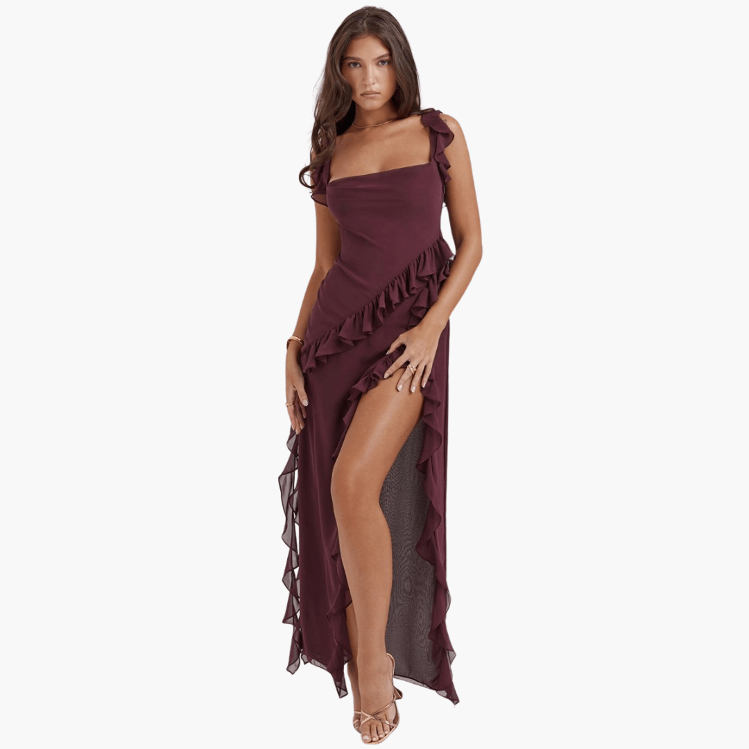 Ruffled Summer Dress for Women – Maxi Dress with High Slit