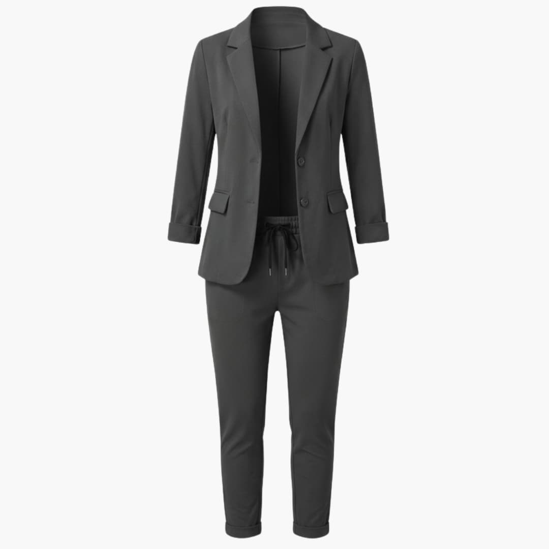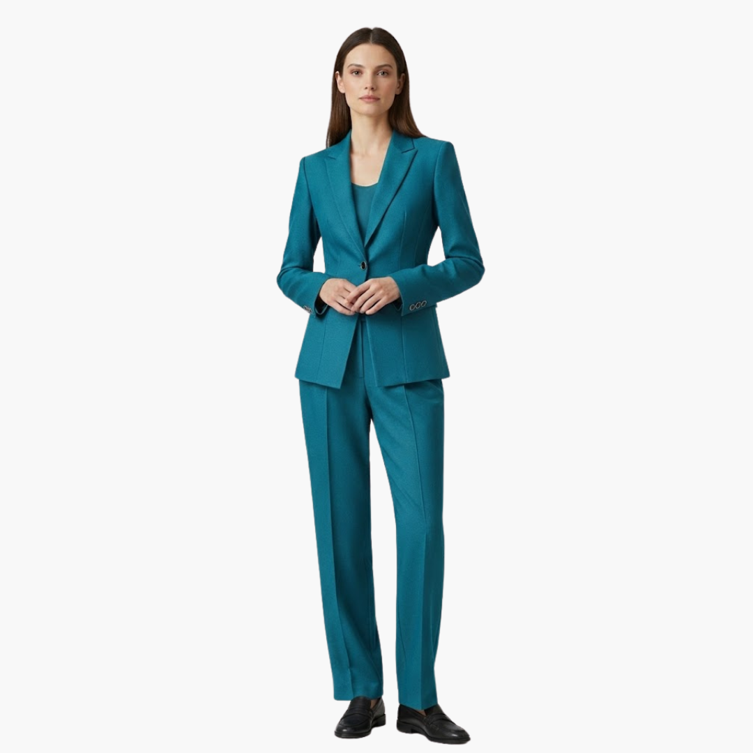 Women’s Blazer Set with Structured Fit and Straight Trousers