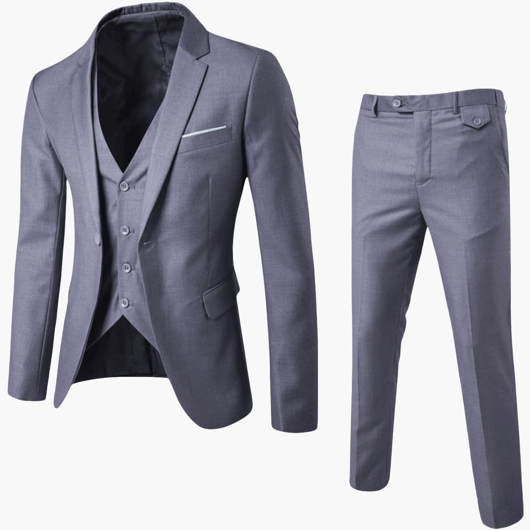 Three-Piece Slim Fit Suit for Men with Notched Lapel Blazer