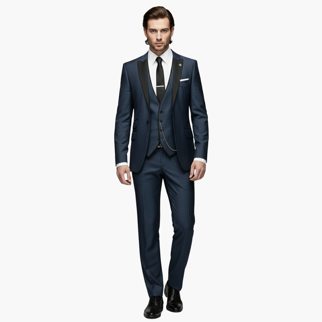 Men's Three-Piece Suit with Vest and Tailored Trousers