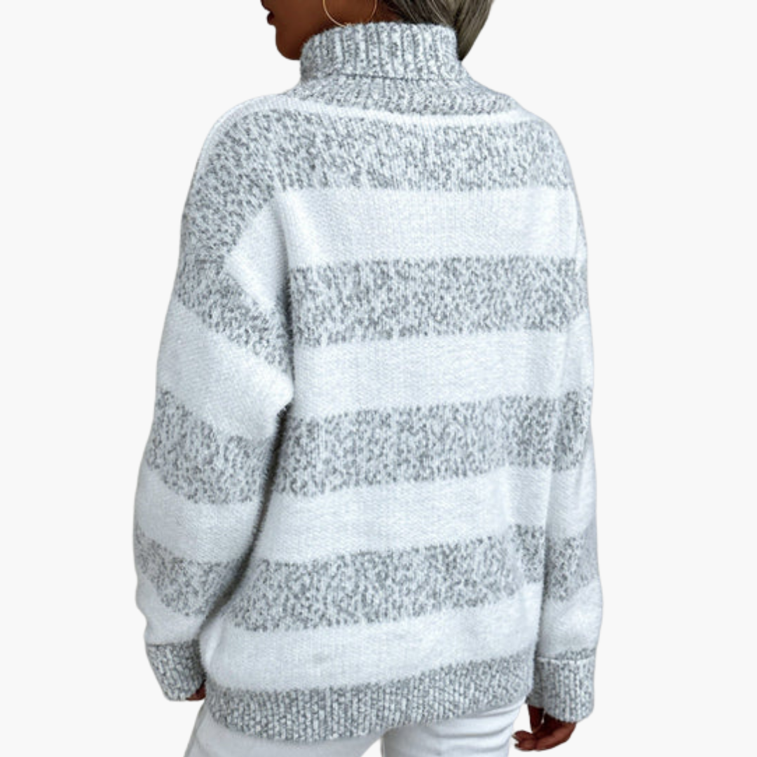 Women's Striped Turtleneck Sweater with Long Sleeves and Ribbed Edges