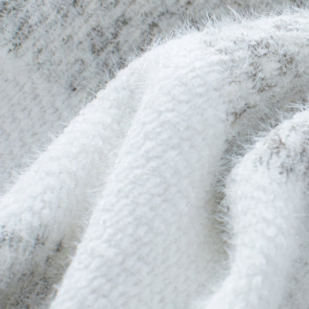 This women's sweater features a high turtleneck and long sleeves with ribbed cuffs. The surface shows a horizontal striped knit pattern, and the hemline includes a ribbed detail for a neat finish. Its relaxed shape allows layering for cooler days and offers versatile styling options.