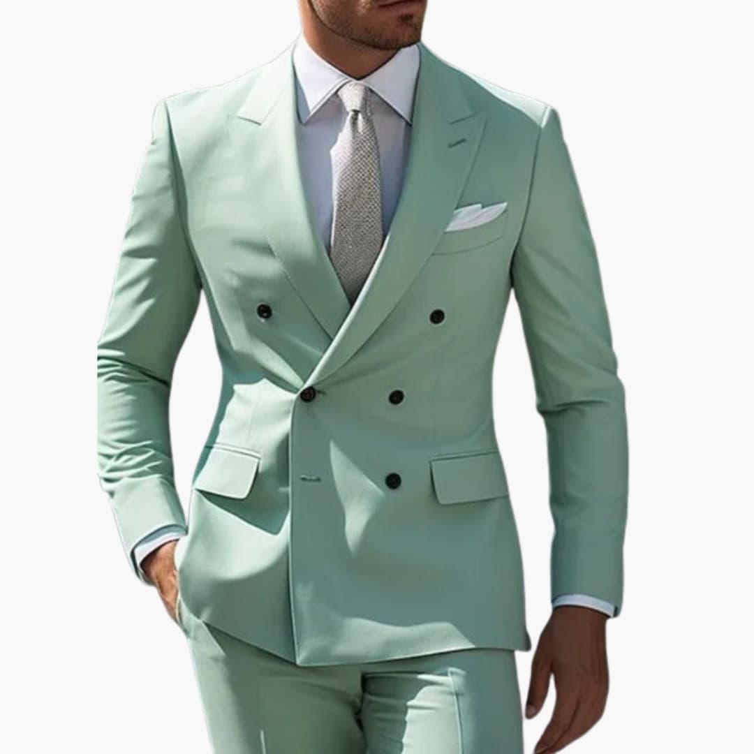 Two-Piece Men's Suit with Double-Breasted Jacket and Peak Lapel