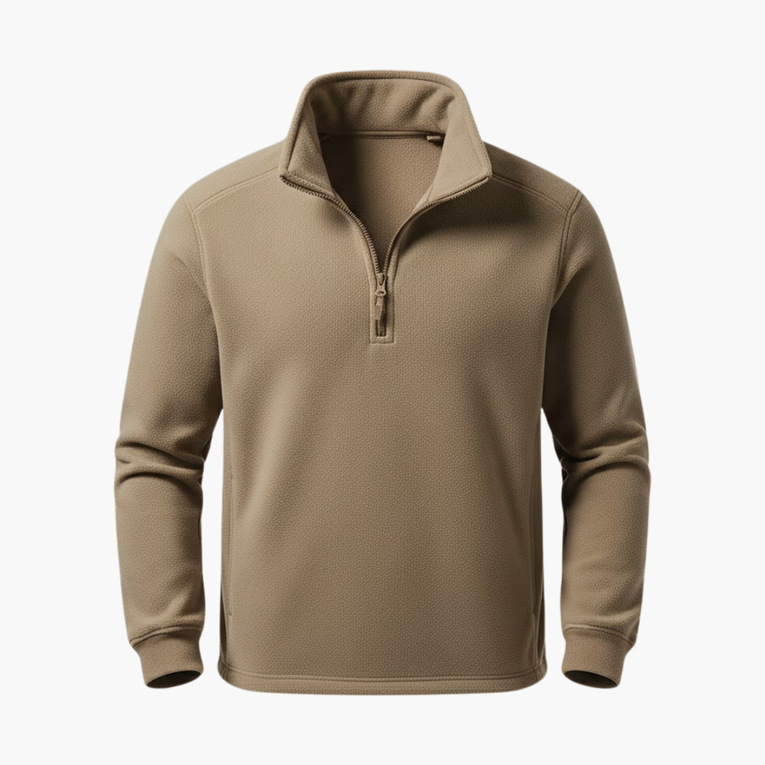 Men’s Pullover with Half-Zip Neckline and Long Sleeves