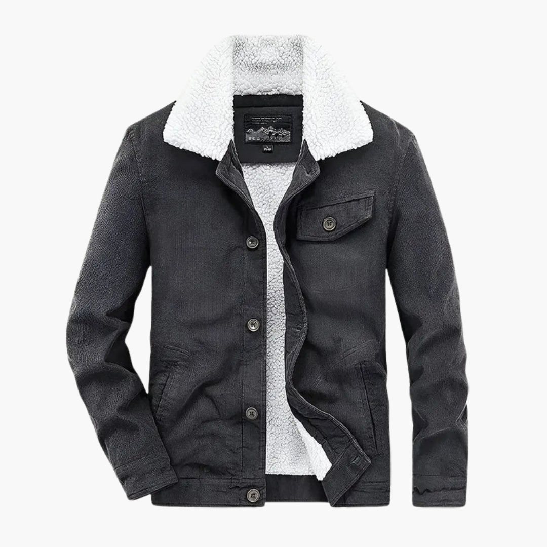 Men's Corduroy Jacket with Shearling Lining and Button Fastening