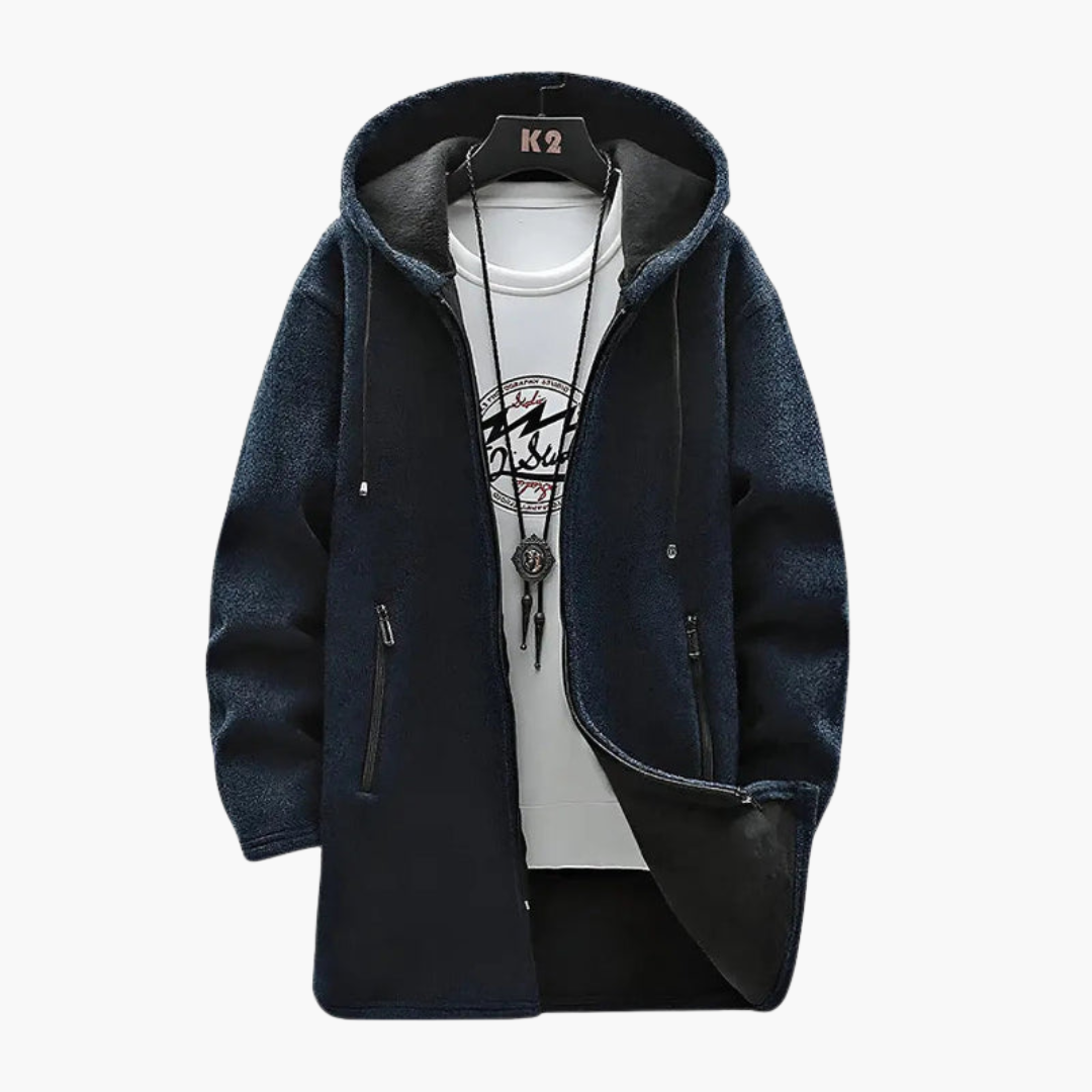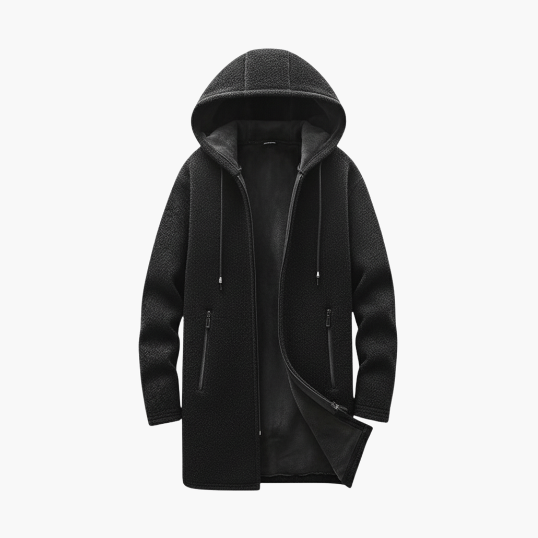 Men's Hooded Jacket with Plush Lining and Front Zip Pockets
