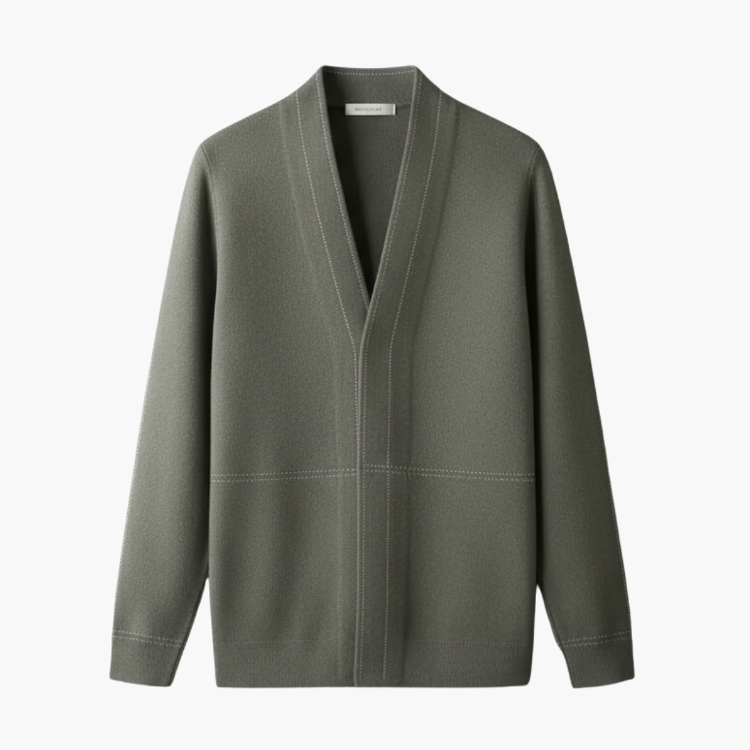 Men's Open Front Cardigan with Structured Stitch Detailing