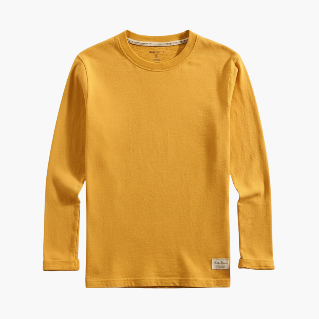 Men's Long-Sleeve T-Shirt with Crew Neck and Straight Hem