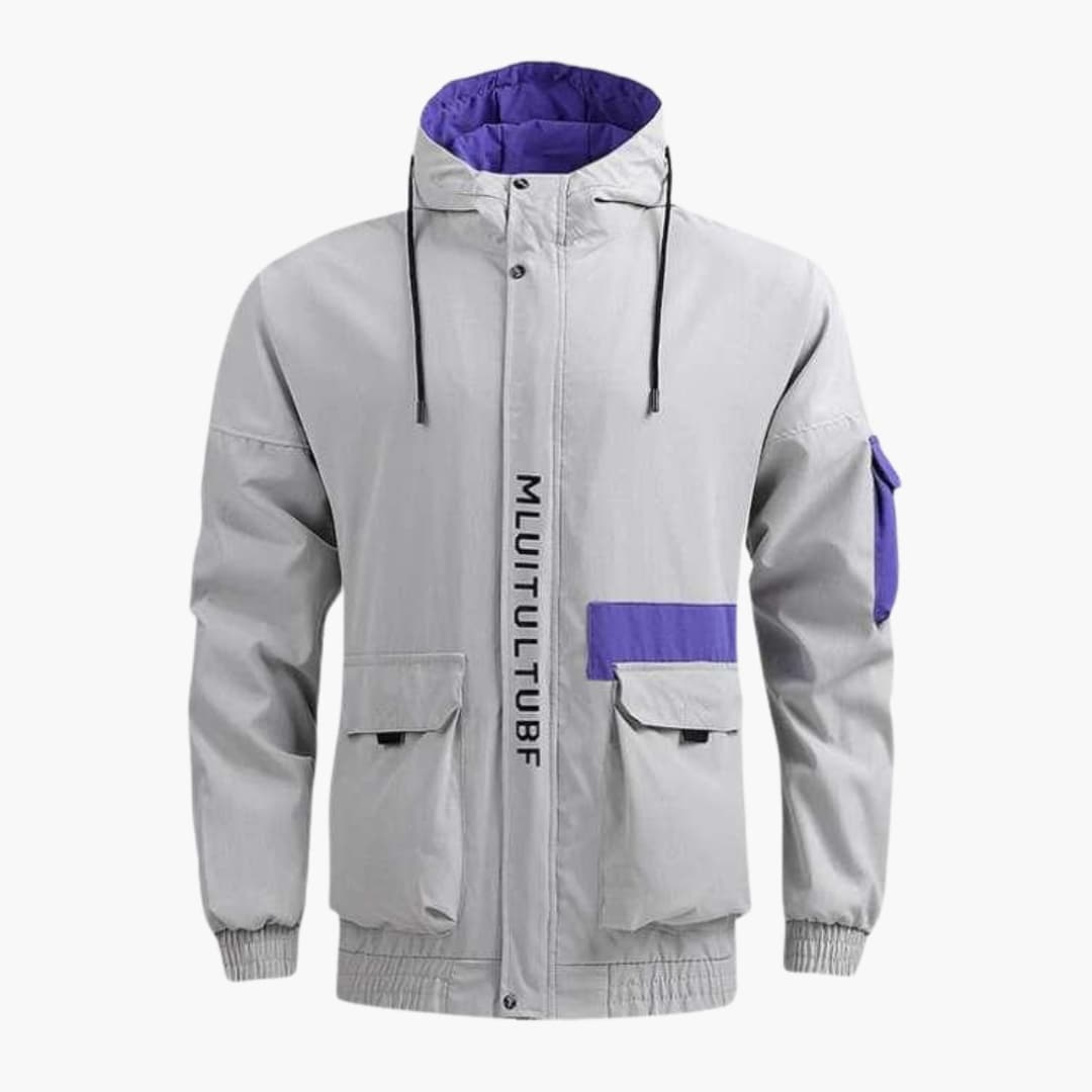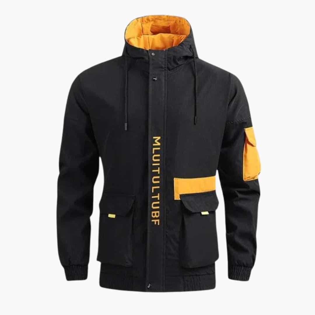 Men’s Hooded Jacket with Zipper Front and Multiple Pockets