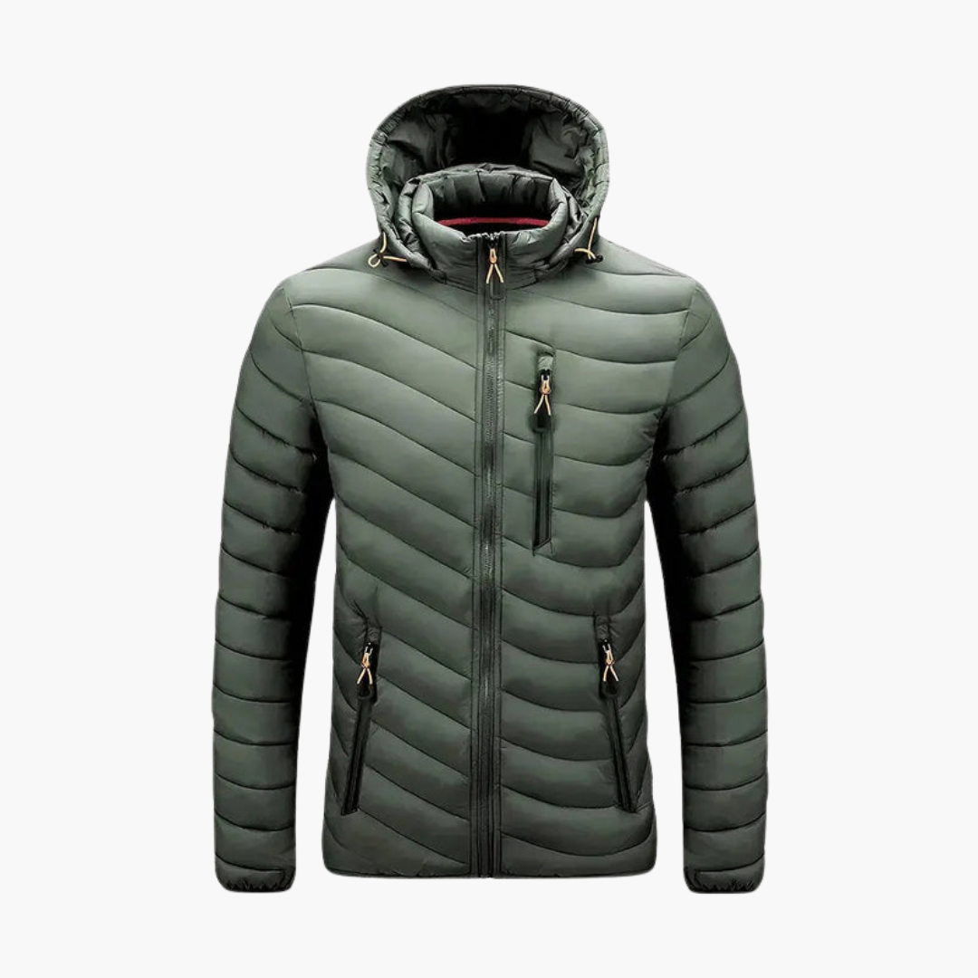 Men’s Hooded Padded Jacket with Zip Front and Side Pockets