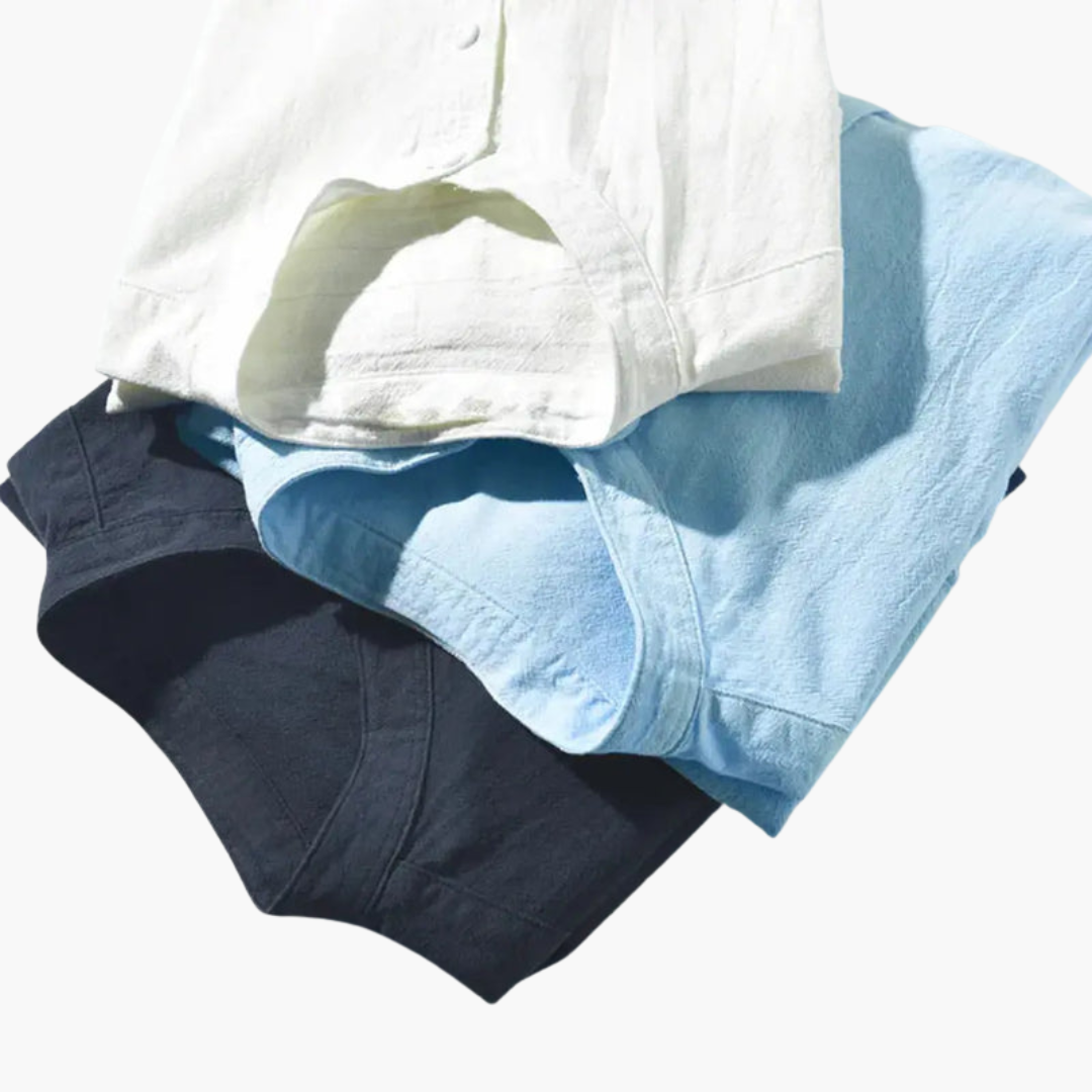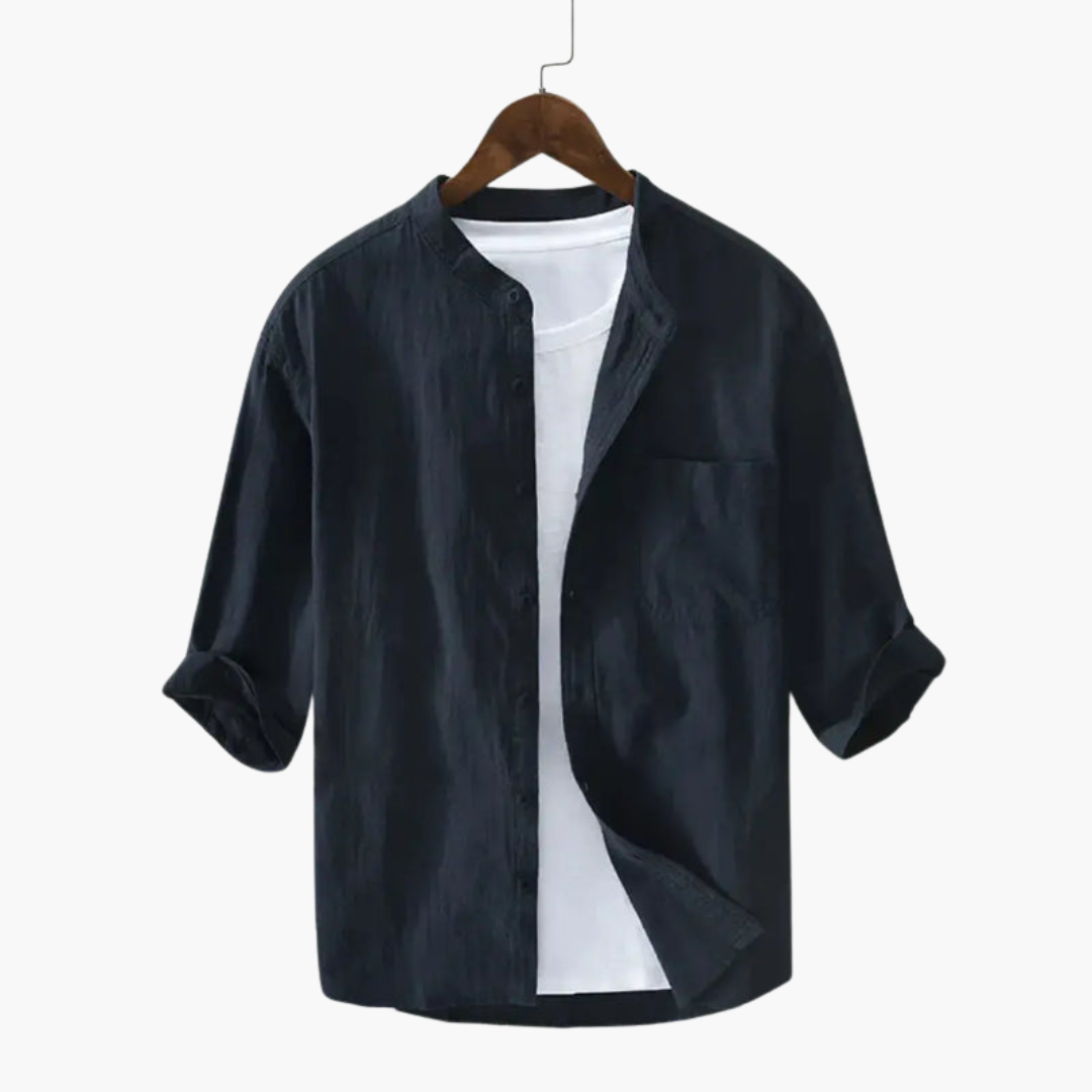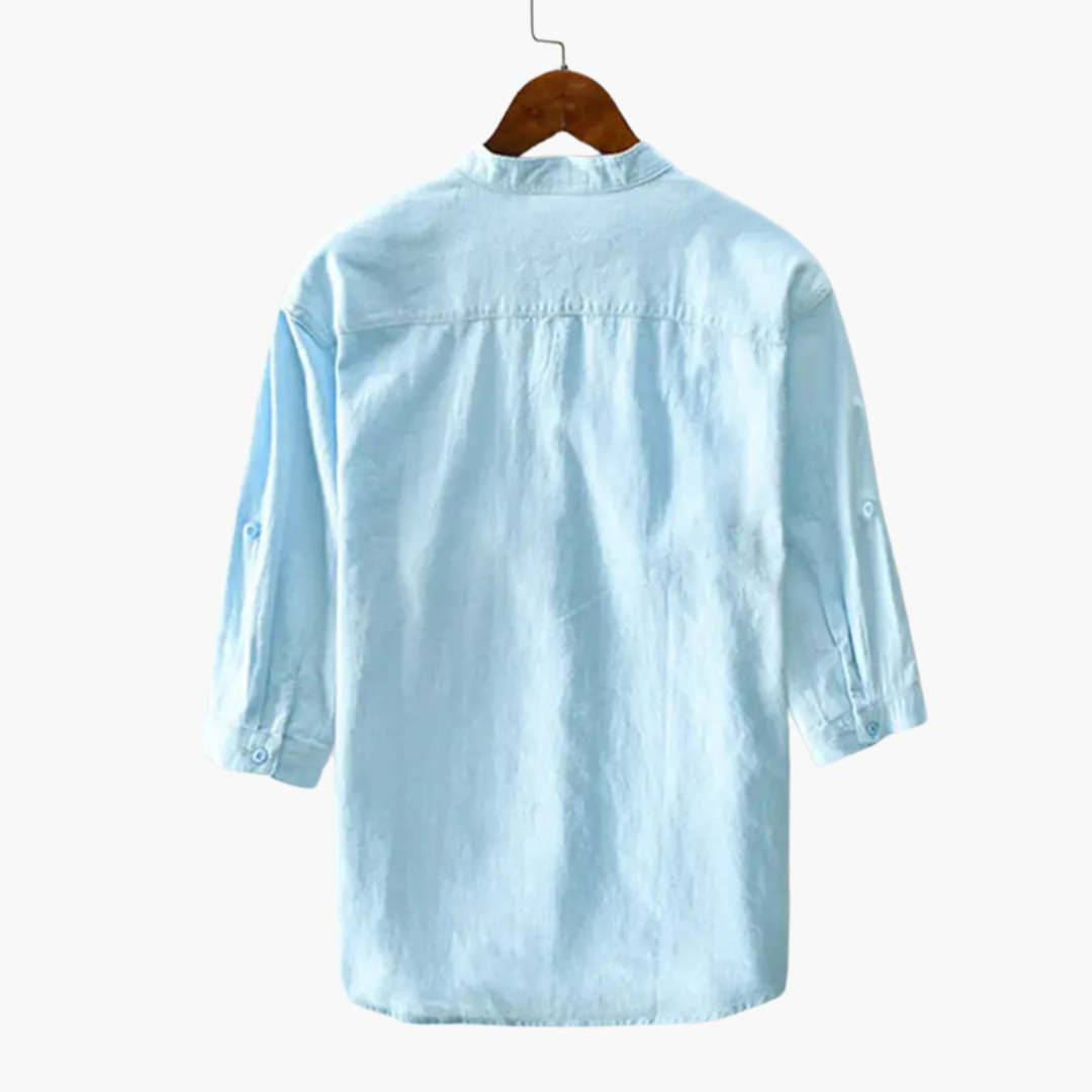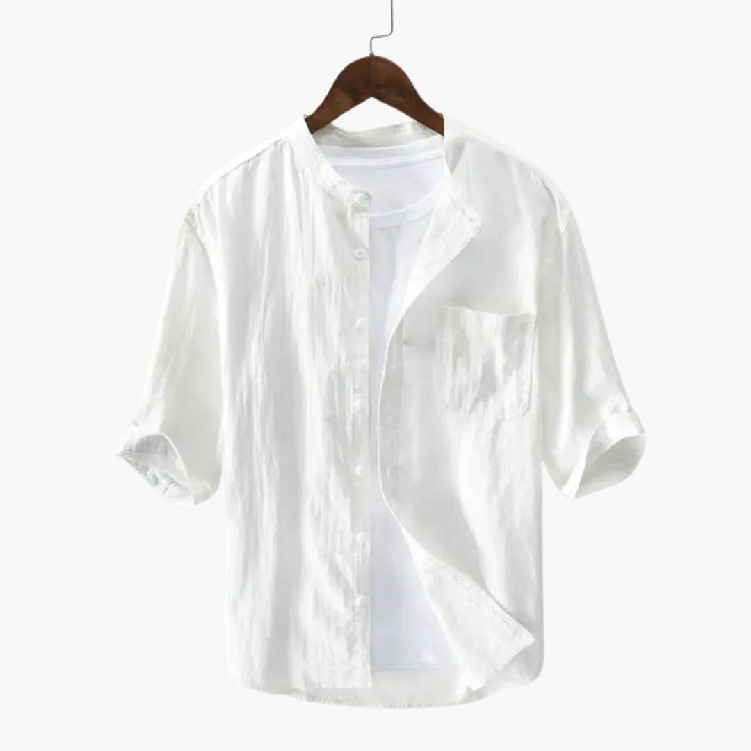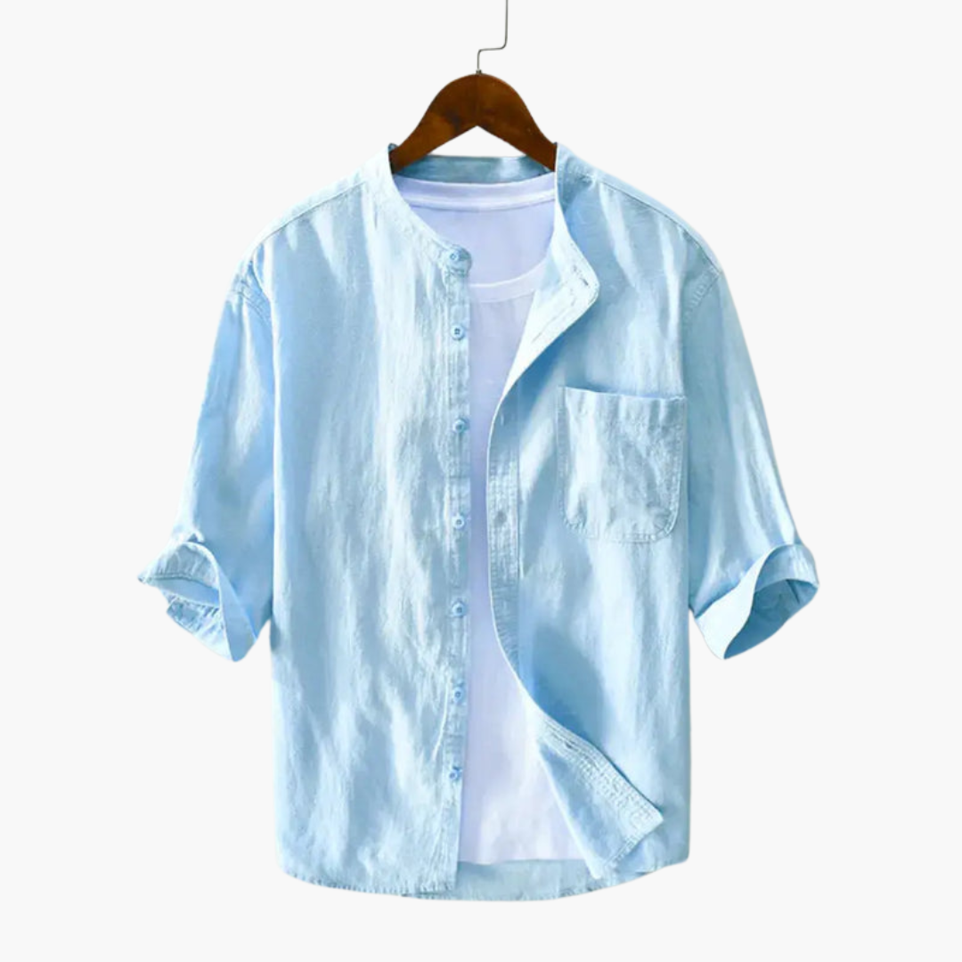 Men’s Linen Shirt with Round Collar and Chest Pocket