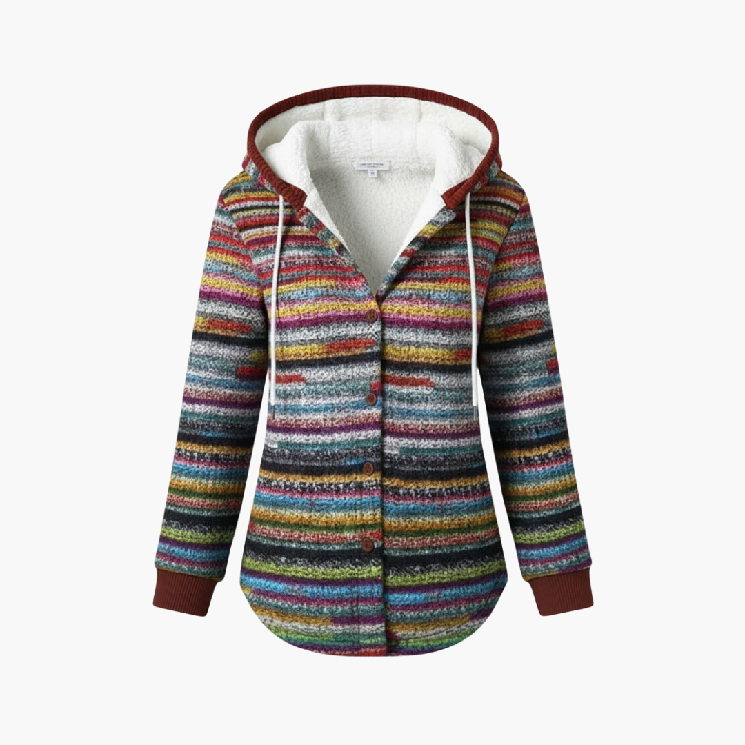 Women’s Hooded Cardigan with Striped Knit