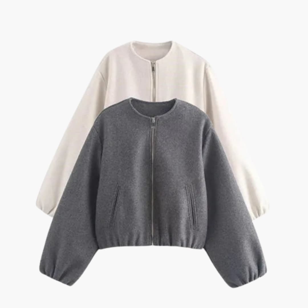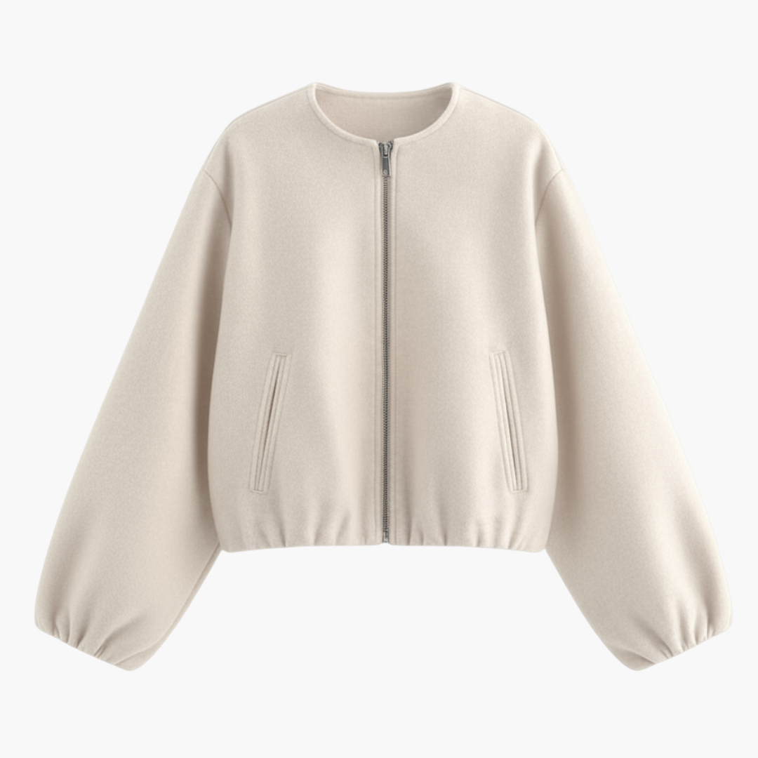 Women’s Transitional Jacket with Round Neckline and Zipper Front.