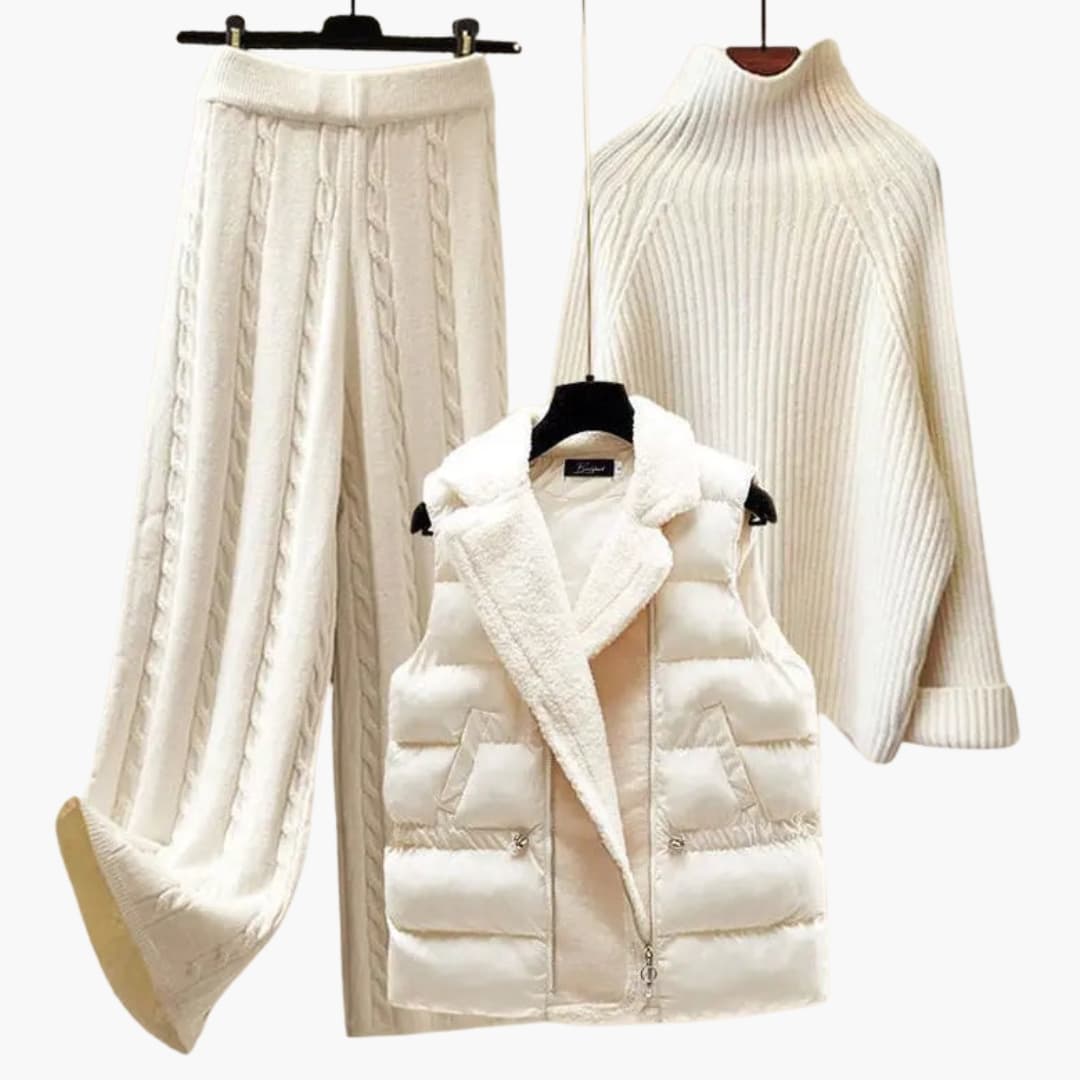 Women's 3-Piece Set with Turtleneck Trousers and Padded Vest