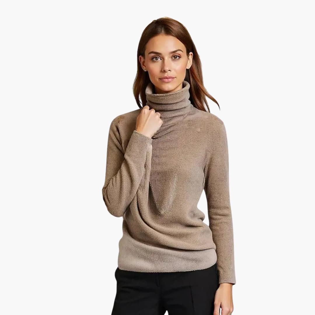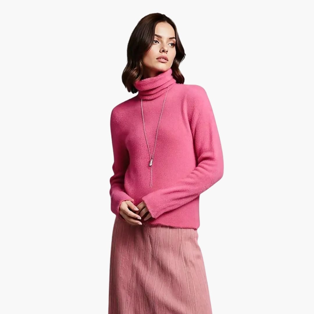 Women's Turtleneck Sweater with Ribbed Neck and Long Sleeves
