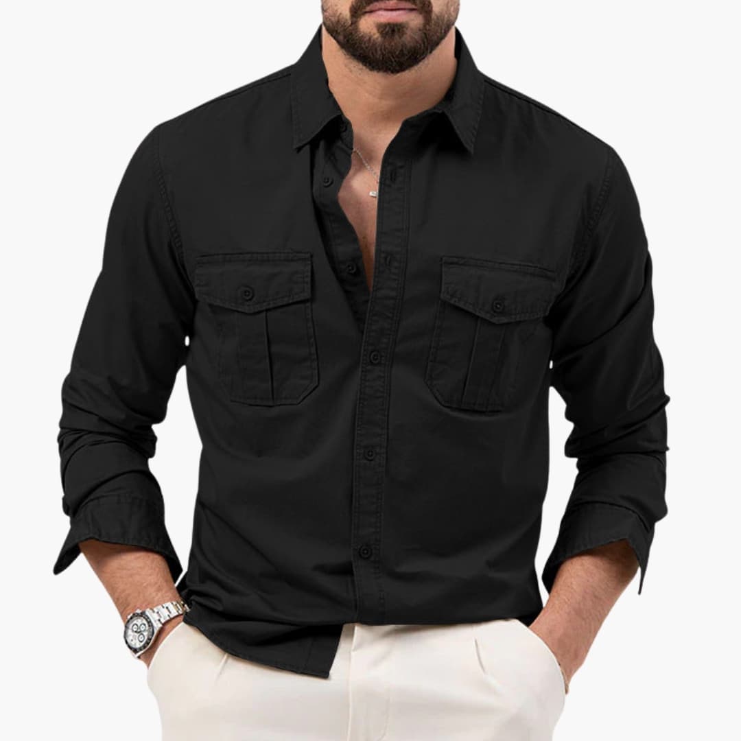 Men’s long sleeve button-down shirt with a classic collar and two chest pockets