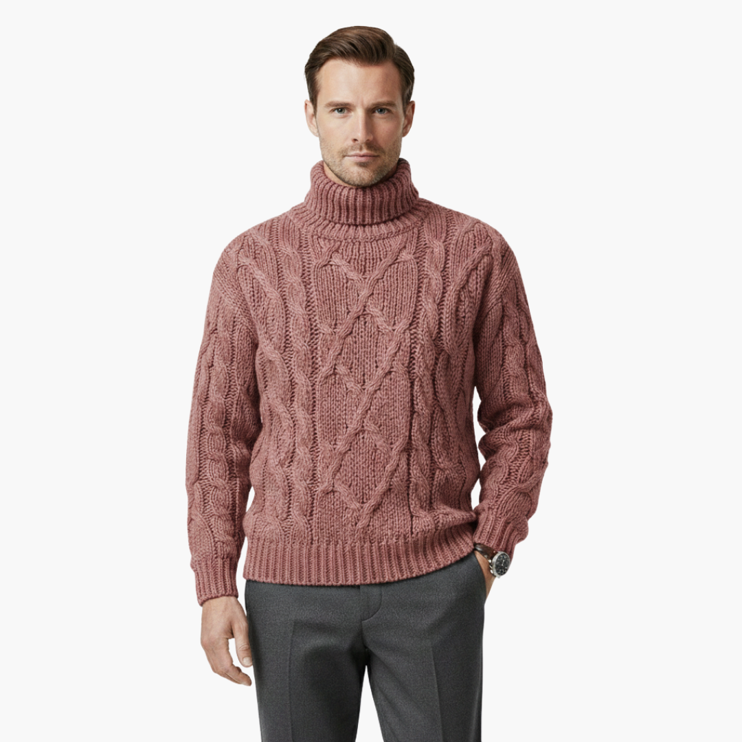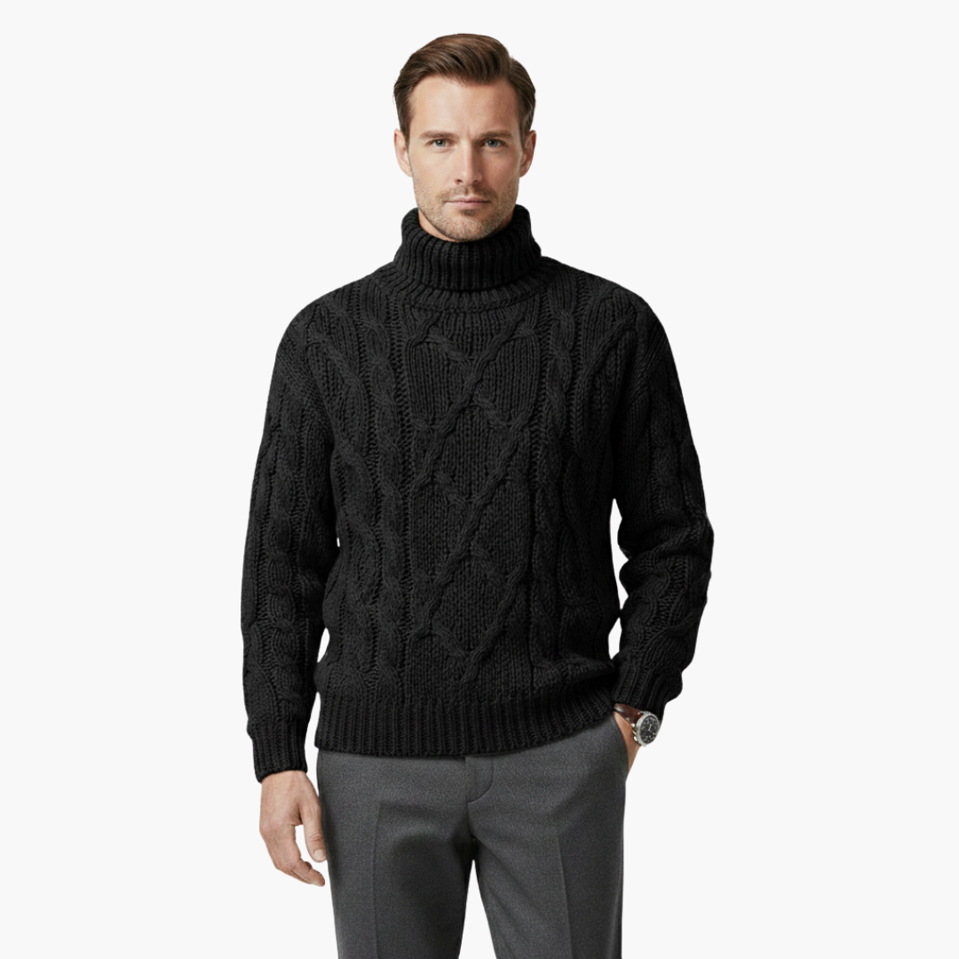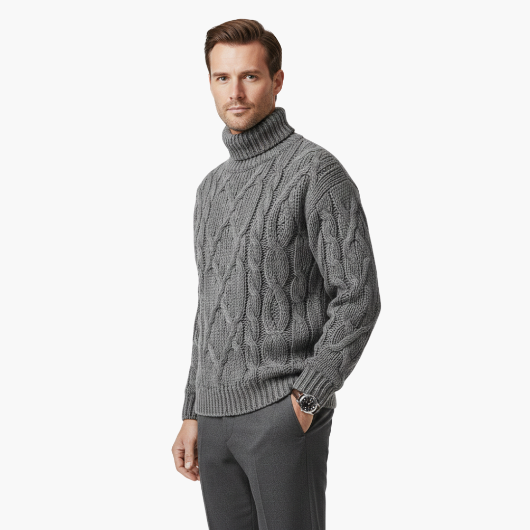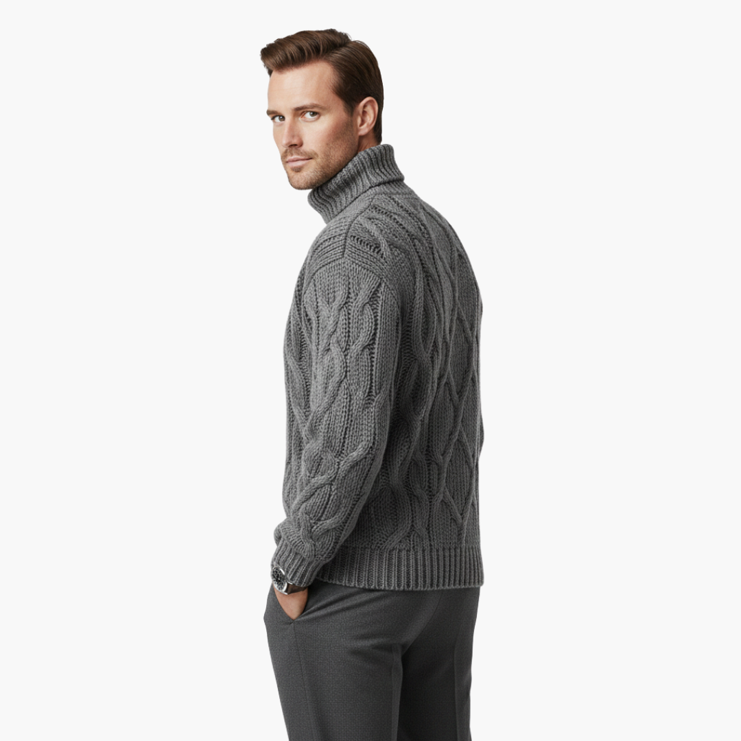 Men's Knitted Sweater with Turtleneck and Cable Knit Surface