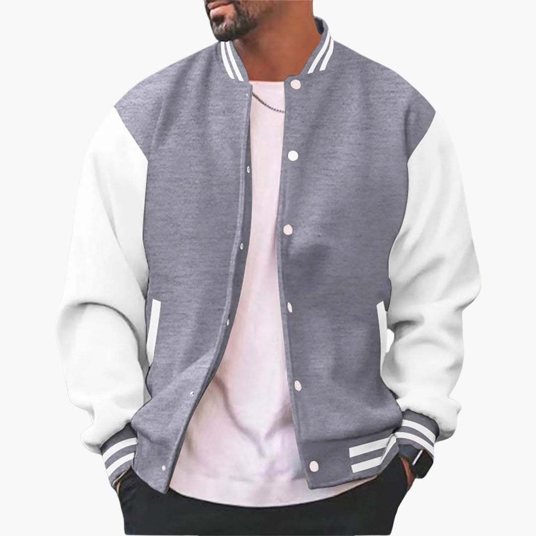Men's Varsity Bomber Jacket with Contrasting Sleeves and Snap Button Closure