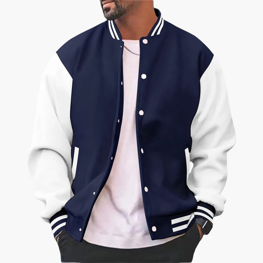 Men's Varsity Bomber Jacket with Snap Buttons and Ribbed Trim