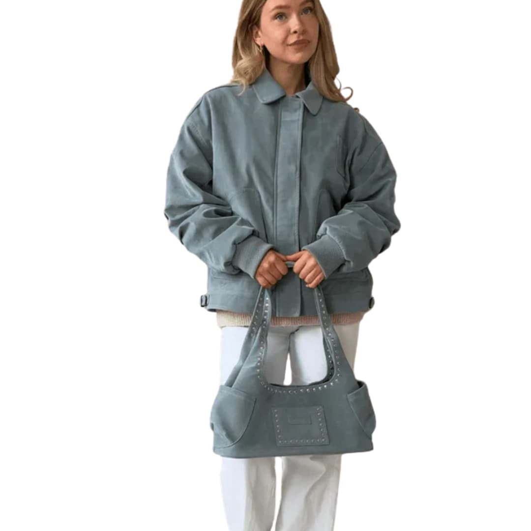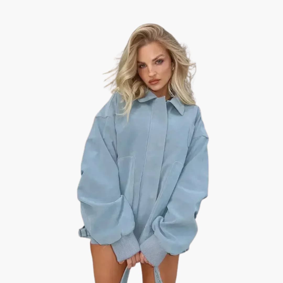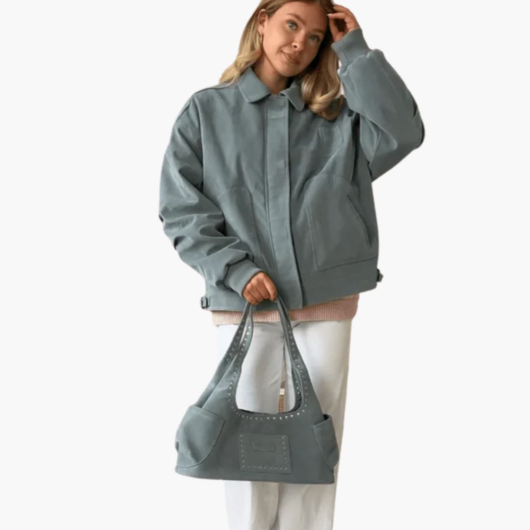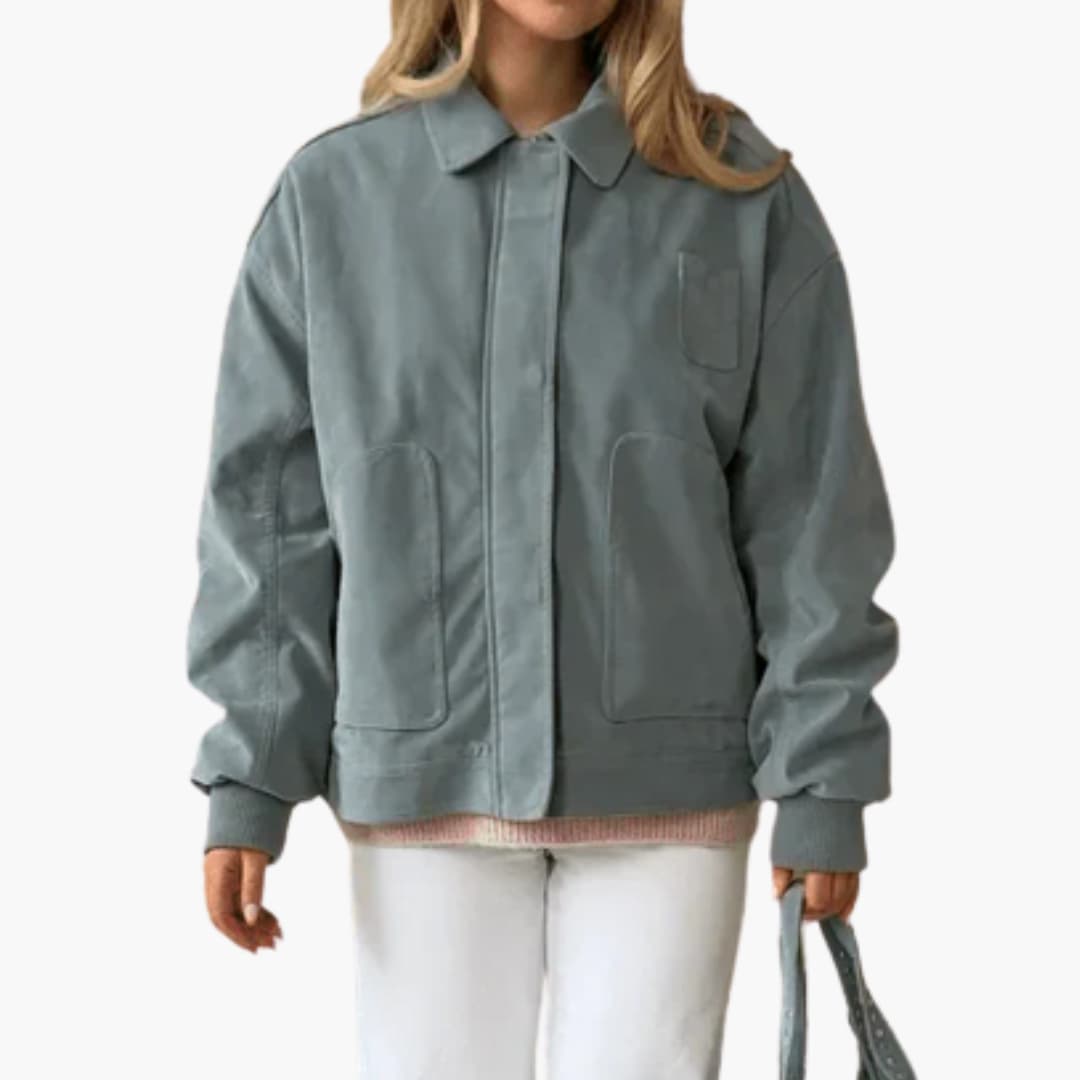 Women’s Bomber Jacket with Zip and Lapel Collar