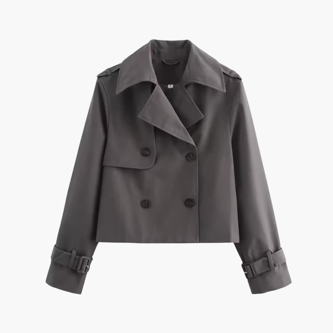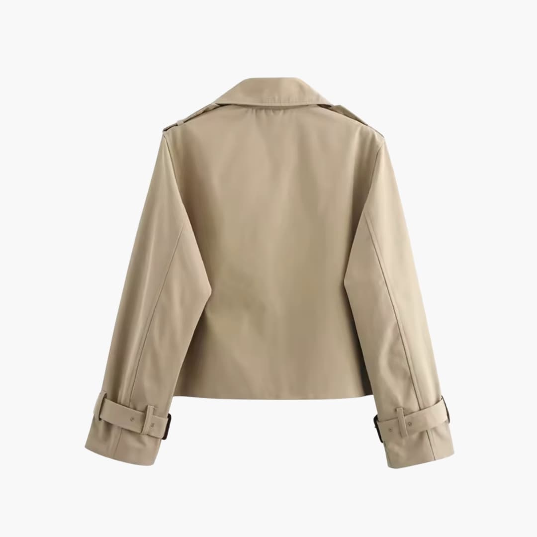 Women’s Cropped Trench Coat with Lapel Collar and Belted Cuffs.